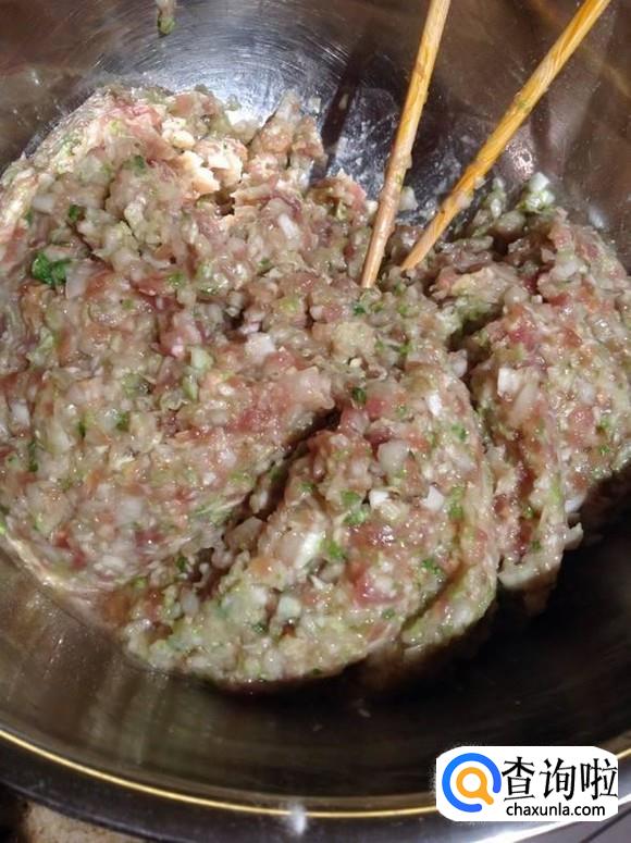 然后我们向其中加入萝卜馅,以同样的方式搅匀,萝卜饺子馅儿就做好了。