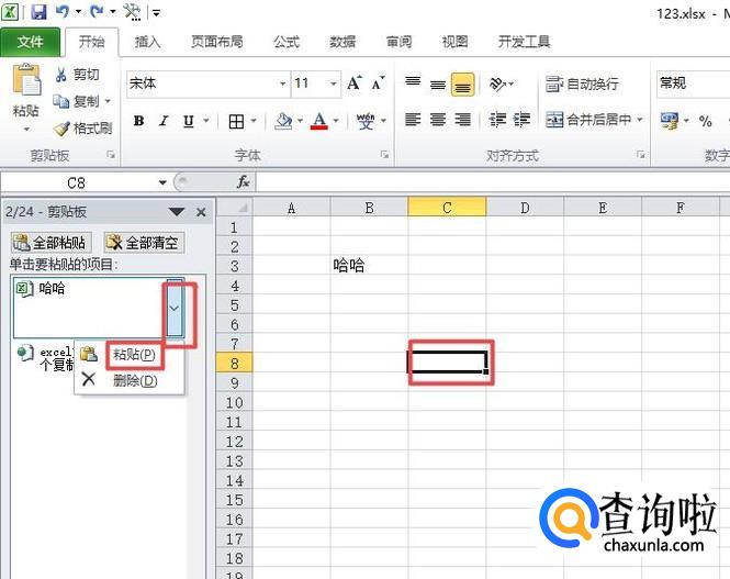之后我们就可以看到被我们粘贴了,我们点击任意的单元格,然后都可以按照之前的方法进行粘贴。