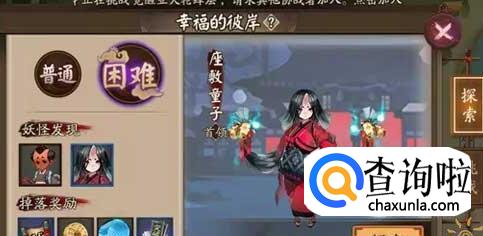 3、在阴阳寮中寻找鬼王,有机会能寻找座敷童子。
