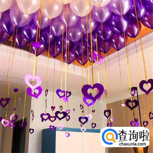 用气球装饰婚房非常浪漫,可以把气球做成花瓣气球,气球心形,气球拱门,气球天花板,还可以做成气球过道,气球背景墙,气球灯,气球婚床以及气球灯笼。