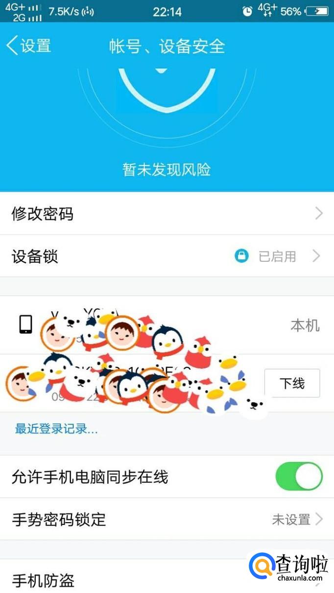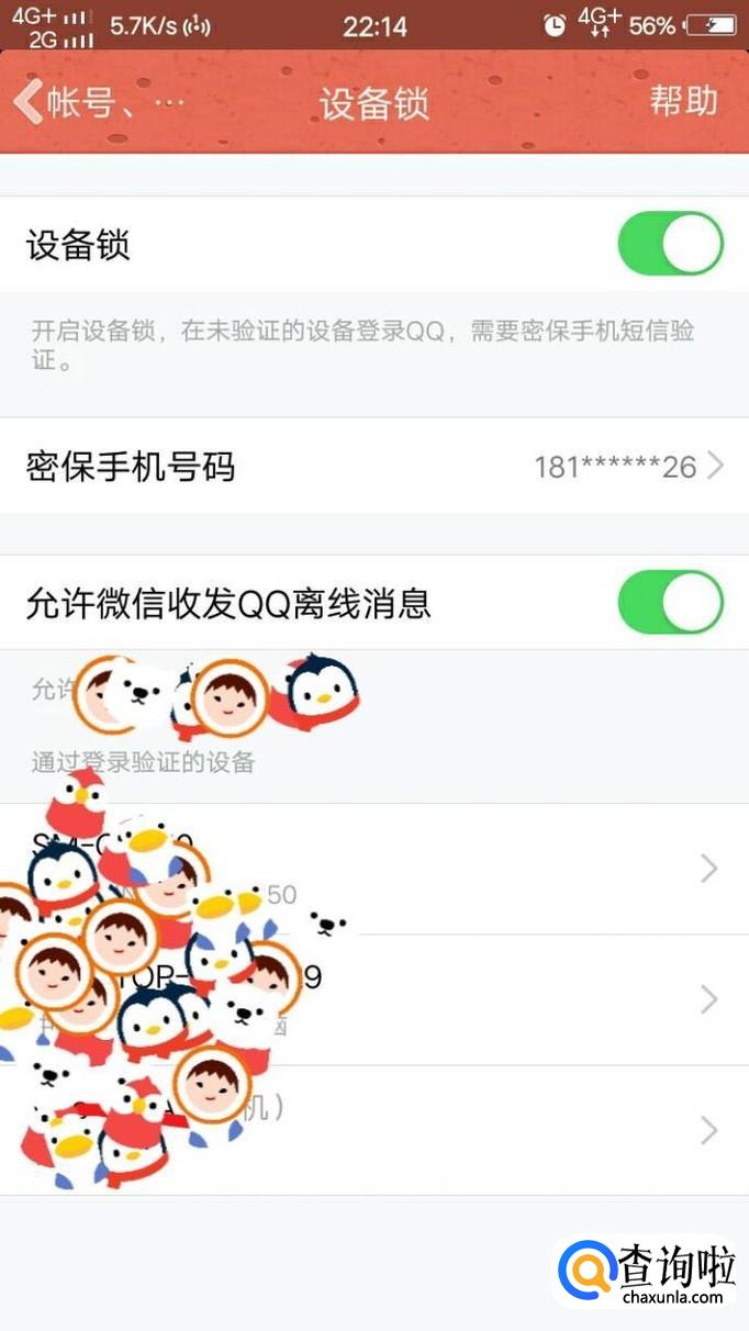 最后,点击设备锁,将允许微信收发QQ离线消息点击开启即可。