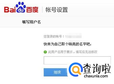 在那个空白空里填入你想好的用户名,这次一定要谨慎,一旦生效就不能更改了。点“继续”。