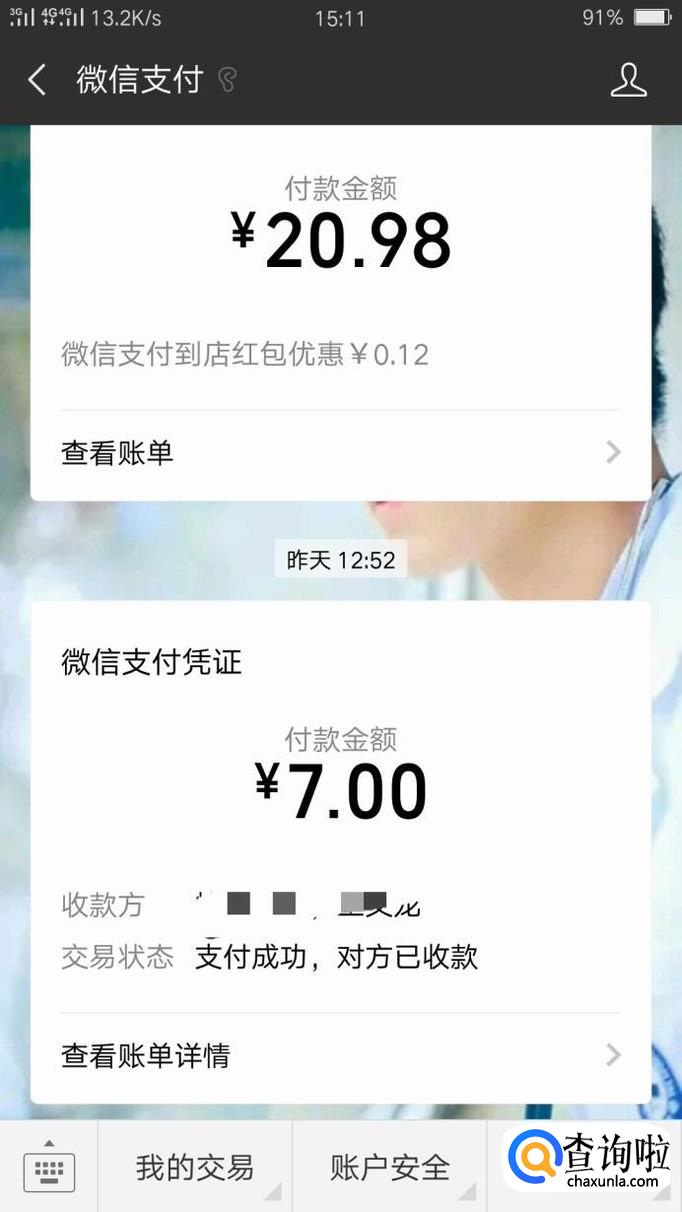 我们要截图的是微信支付凭证的详细界面,所以点击要截屏的账单,进入交易记录,就可以看到全部信息,然后用手机截屏方法,把这个界面截屏下来就OK了!