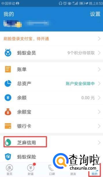 首先,我们打开我们的手机,然后我们打开我们手机上的支付宝,之后我们点击右下角我的,然后我们点击芝麻信用;