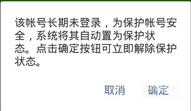 当你切换微信帐号登录出现提示:“该帐号长期未登录,为保护帐号安全,系统将其自动设置为保护状态,点击确定按钮可立即解除保护状态。”按提示点击确定就可以了。