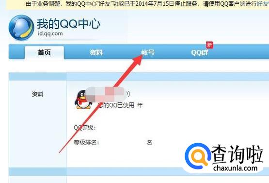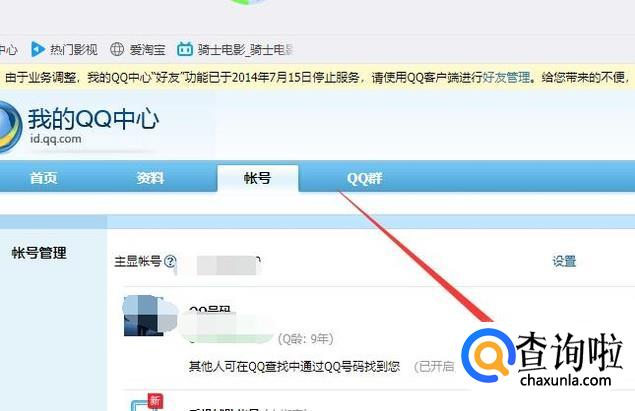 如下图所示,在账号菜单下,可以看到关闭QQ账号查找功能的选项。