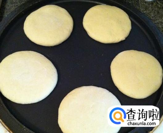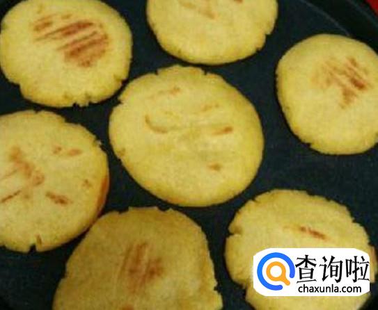 然后把粉团做成一个个小饼放置锅里用小火煎。