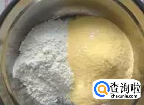 把玉米粉放置盘子,加面粉。【面粉和玉米粉的比例是1-2】