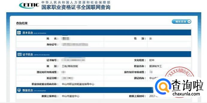 查询结果中会显示你的基本信息、证书信息和数据信息。