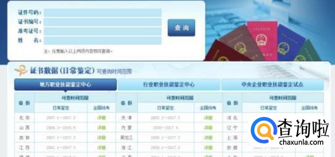 如果获取的证书数较多,而且省份还不一样,可以在“证书数据(日常鉴定)”-“地方职业技能鉴定中心”中查询详情信息。选择该证书的省份,单击“全国统考”-“详细”来查询信息。