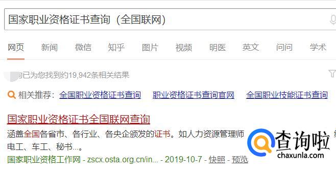首先我们打开浏览器,在搜索栏中搜索“国家职业资格证书查询(全国联网)”,认证“org”的政府网站标识。