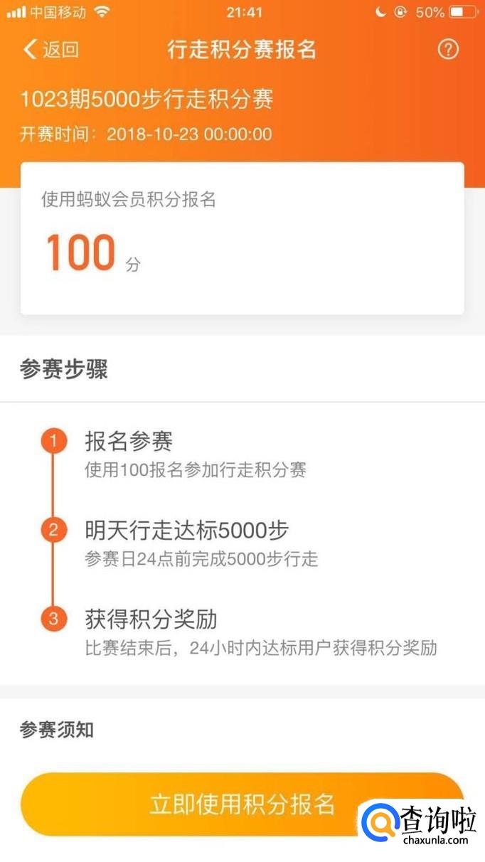 然后点击立即使用积分报名,如下图所示。