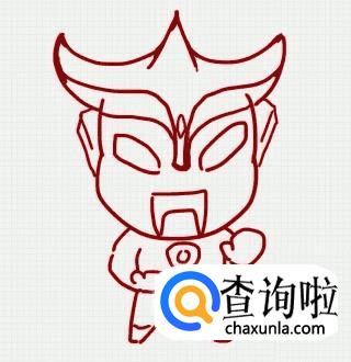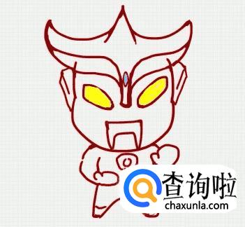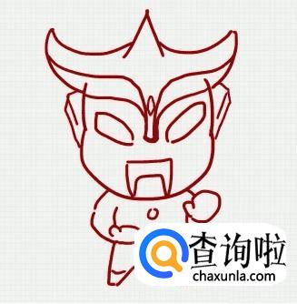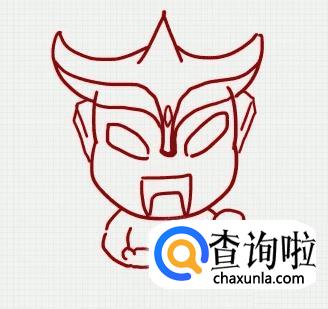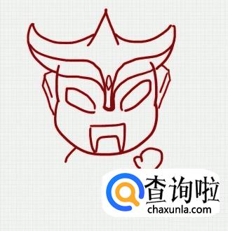 然后根据线条画出雷欧奥特曼的鼻子和耳朵,记住眉心还有一个小菱形。
