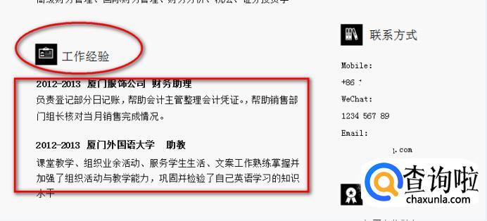 一张简历最重要的部分,可以说就是工作经验了,毕竟有过相应的工作经验,那么就可以直接入职,减少培训成本和时间。工作经验包括兼职和实习,如果都没有的话,可以写上毕业设计。比如要面试Java程序员,那么可以写上在毕业设计中,使用Java语言,spring框架做过一个Java办公自动化系统,再写上该系统实现了哪些功能等等。
