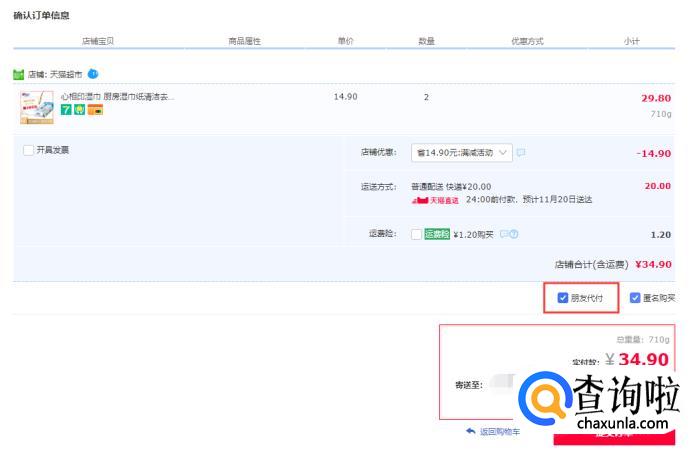 勾选“朋友代付”,然后提交订单。