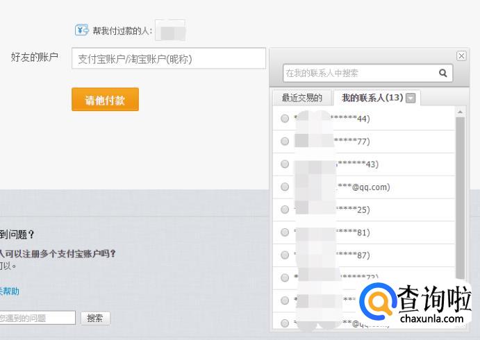 输入好友的账户,就是好友的支付宝账户、再或者淘宝账户名都可以。