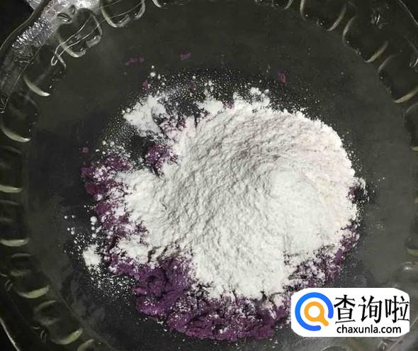 用勺子或者搅拌机将紫薯弄成泥状,然后混合糯米粉(代替木薯粉),搅拌均匀即可。