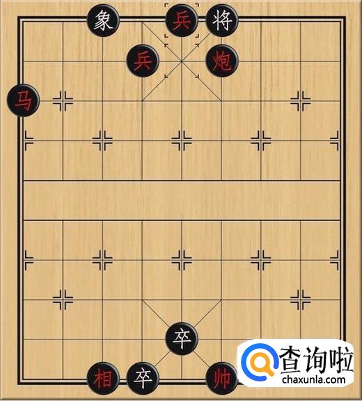 红方先走,炮四退六,以防黑方的卒子下来将军,一击致命。