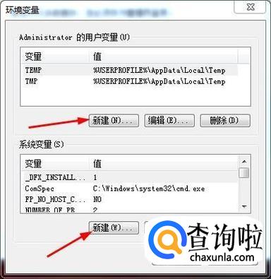 弹出环境变量对话框,点击上面的新建可以添加用户变量。点击底下的新建,可以添加系统变量。