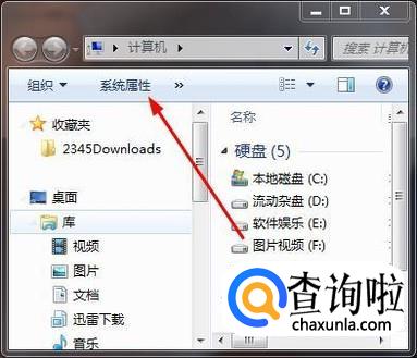 首先,在桌面双击打开计算机,在计算机窗口工具栏上点击系统属性。