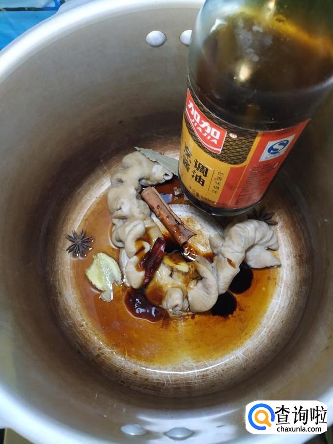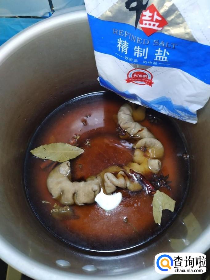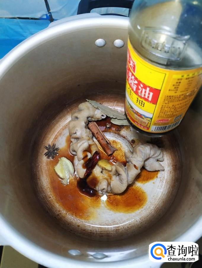 根据自己的口味,再加入适量的生抽,老抽上色,加入清水沒过大肠,再加入适量食盐调味。