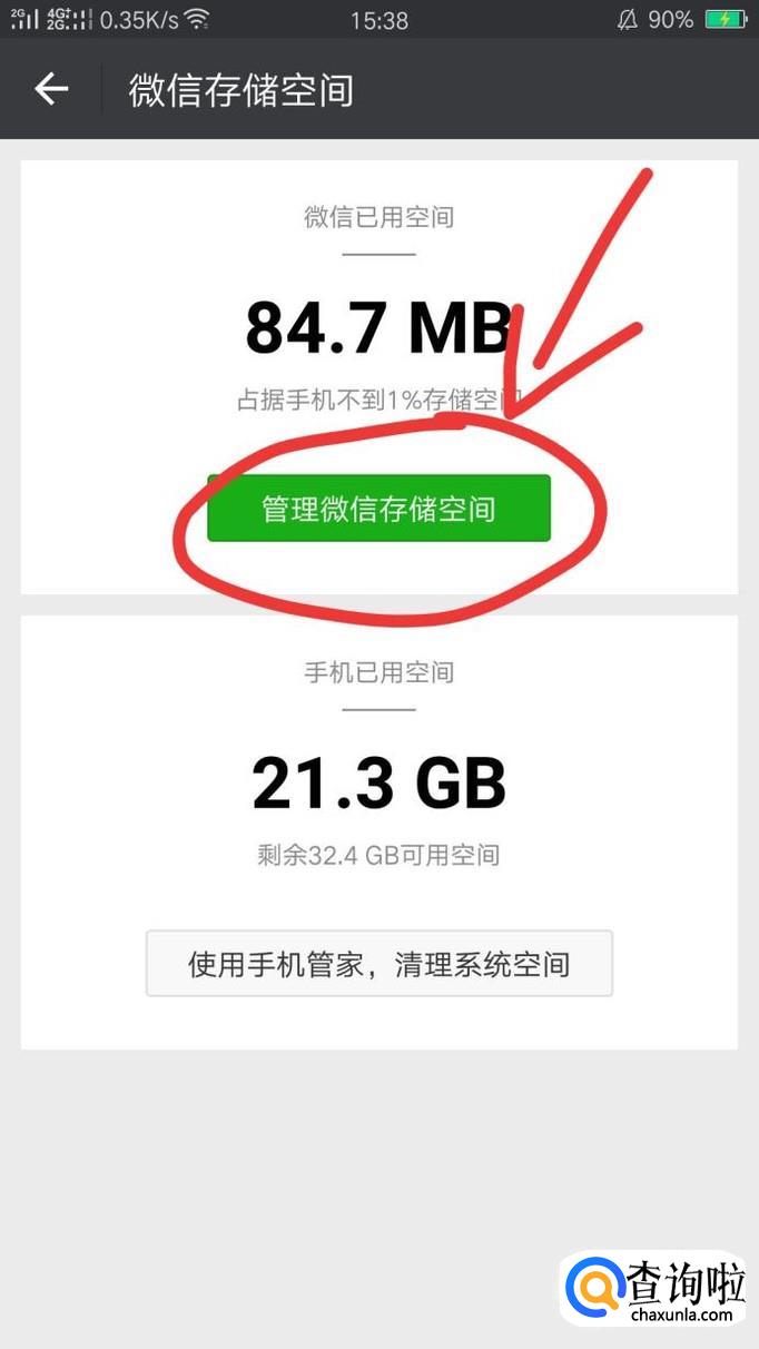 点击“管理微信储存空间”。