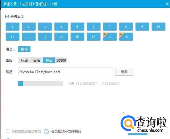 点击图标后系统会让你选集下载,选择好点击右下角的开始下载即可。