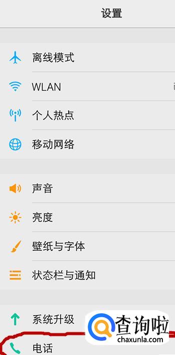 进入设置页面后,找到并点击“电话”。