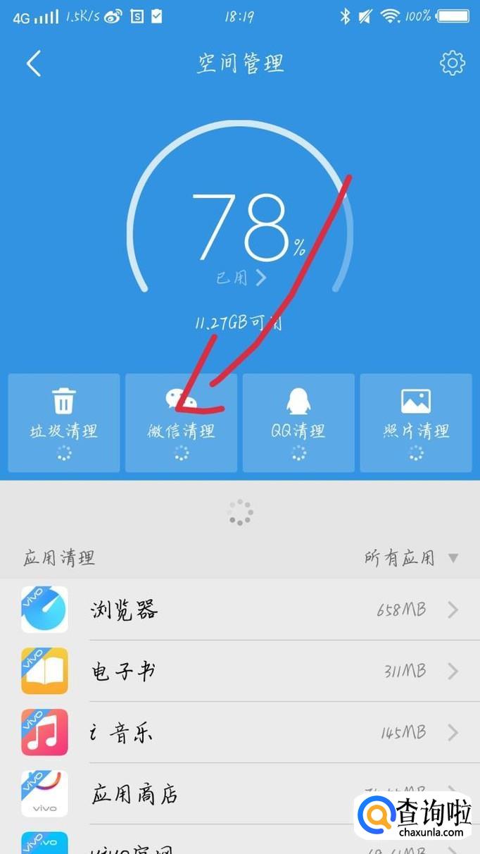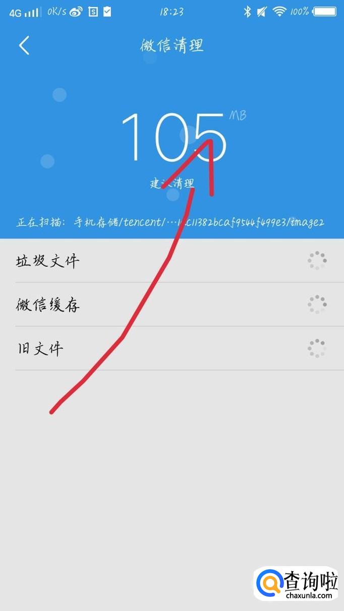 这样就可以清楚你的微信里的不必要的垃圾,比如聊天记录等。可以加速你手机的运行速度。如图1箭头所示,你可以看到你清除了多少垃圾。