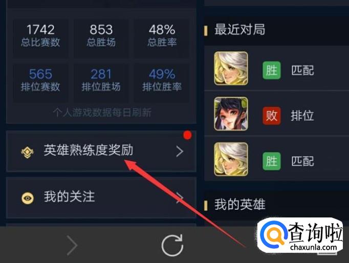 进入之后,选择一个有熟练度的英雄,如图所示。