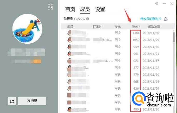 等级头衔都是根据积分来的,一般等级头衔有6种,随着积分多少等级头衔也会相应变化。积分数量可以登陆电脑端群成员这里查看,如下图。