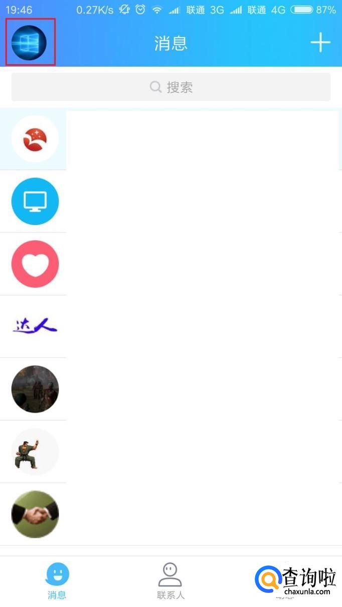 首先,打开手机QQ主页面,在消息页面中点击个人头像。