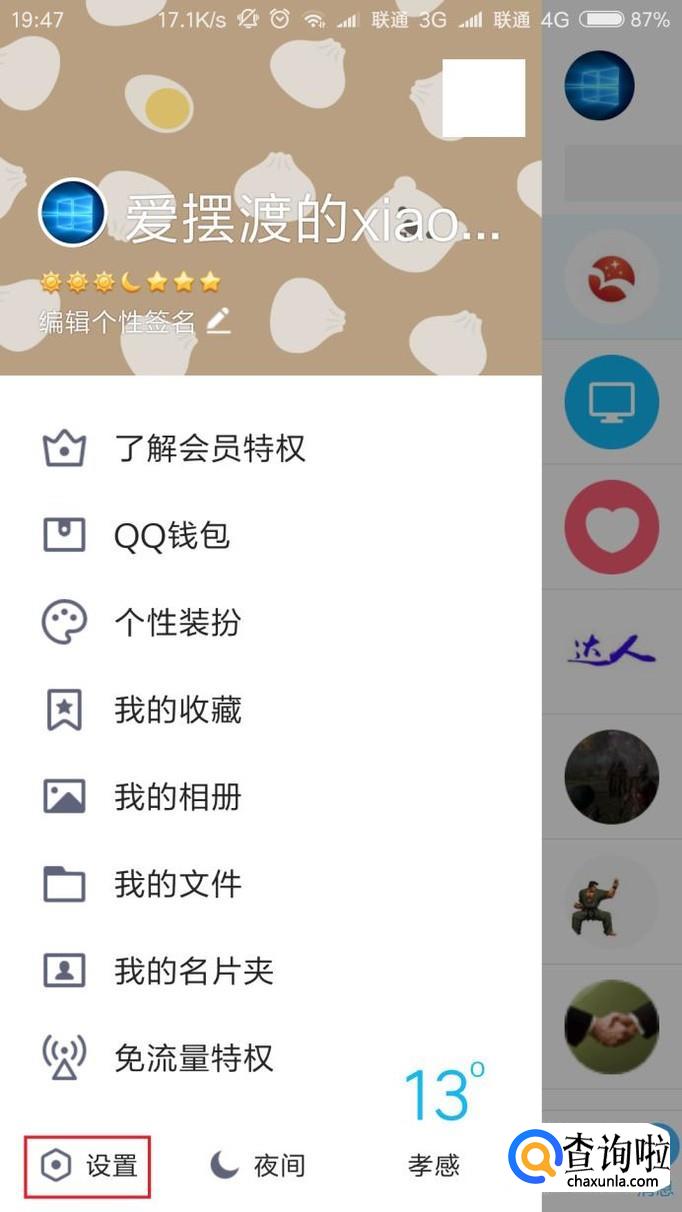 在打开的页面中,点击页面右下角“设置”按钮,进入手机QQ设置页面。