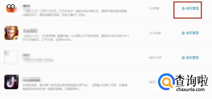 然后点击要取消授权的软件右侧的授权管理,如下图所示。