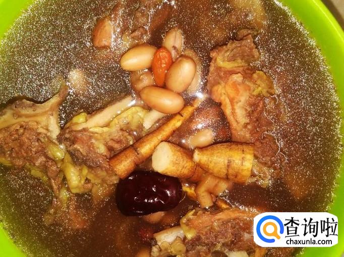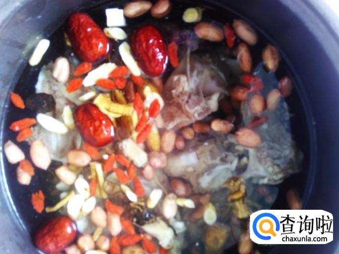 牛排骨700克,花生150克,生牛大力30克,当归、党参、枸杞、黄芪、红枣适量。
