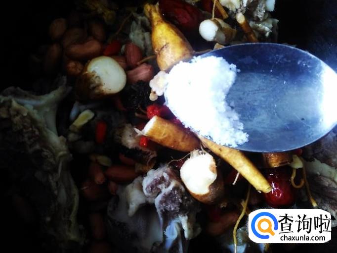 加适量的盐、水,水要没过食材多出两节手指。