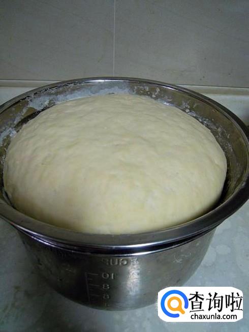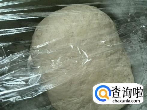 在面粉团里放入酵母,用保鲜膜密封让面粉团发酵,大概等到面粉团发酵至两倍大时就可以拿来用了。