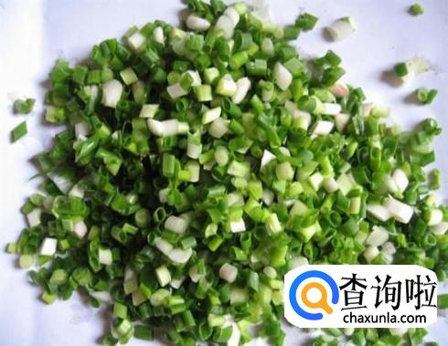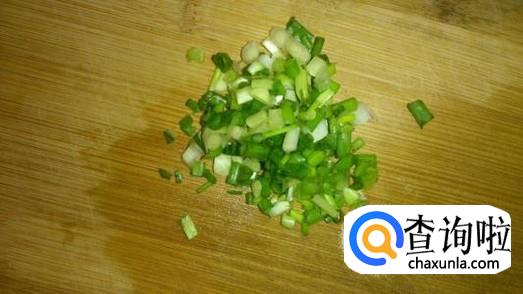 然后把葱洗干净,洗干净之后切碎,切得越细越好,切好之后放到碗里,再放入一些调味料。