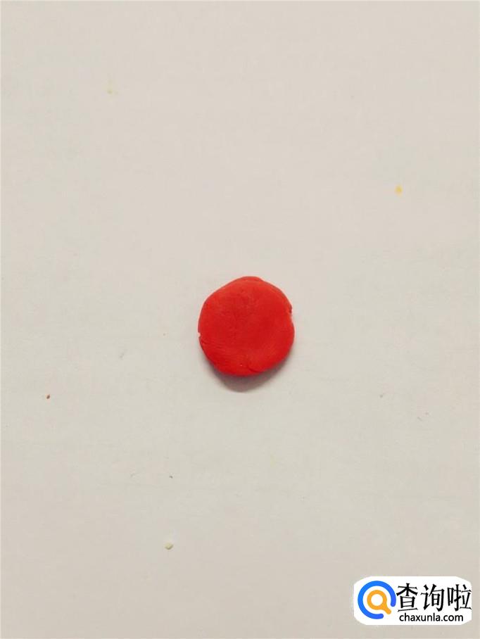 先用红色彩泥团一个球,再按扁。
