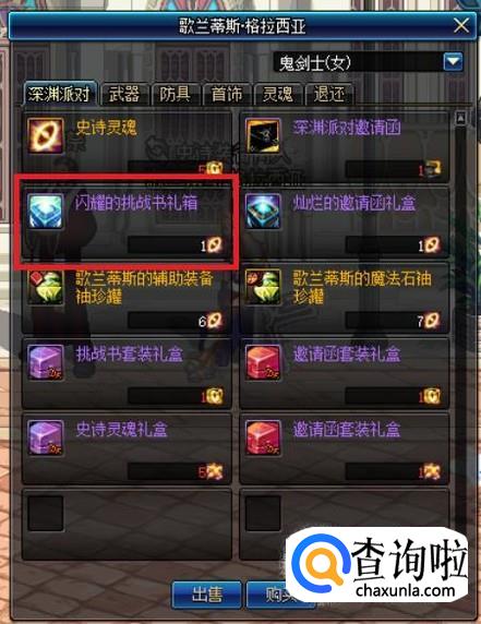 在歌兰蒂斯的商店中,可以消耗1个史诗灵魂兑换“闪耀的挑战书礼箱”,开启后即可获得20张深渊派对挑战书。