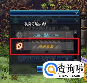 而史诗灵魂的另一个获取途径,则是通过分解史诗装备,每分解一个史诗装备可以固定获得一个史诗灵魂。