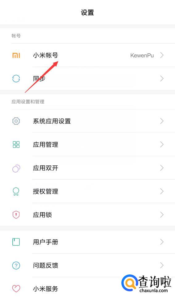 打开设置之后在下方找到【小米账号】点击它。