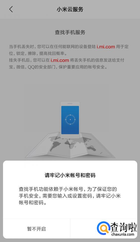可以通过系统提示看到,当我们的手机丢失的时候可以登录i.mi.com尝试找回,锁定数据或者擦除数据了。