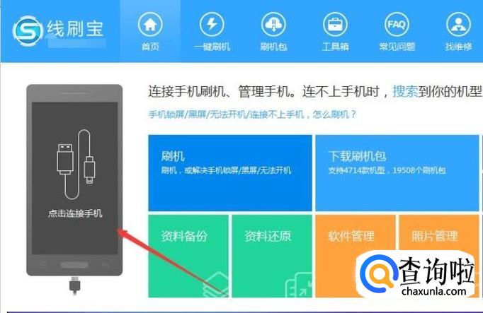 安装好后我们打开线刷宝软件,进入界面后我们先点击“连接设备”,我们将手机连接上。