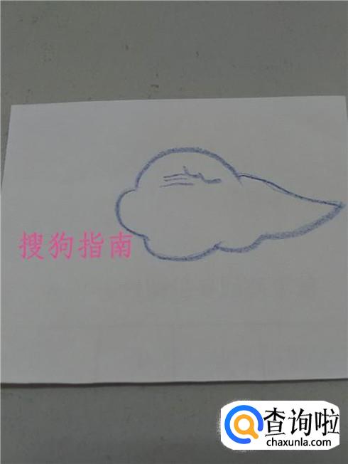 先用笔在纸上画六条相连的弧线,左边宽,右边窄,表示风婆婆的身体和头。