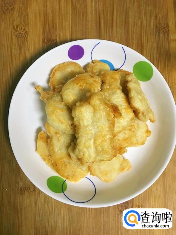 把所有的鱼片都煎至金黄色,出锅装盘。