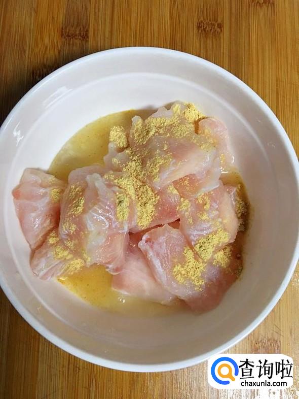 鱼片放入碗中,依次加入1小勺料酒和生姜粉,用手抓匀,静置5分钟左右。