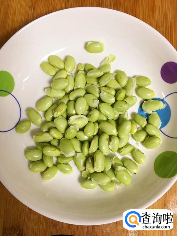准备好毛豆米,用清水冲洗然后沥干水分放入盘中待用。
