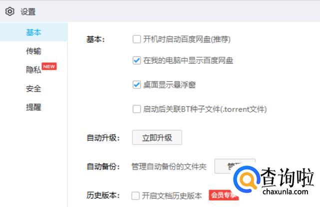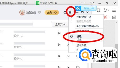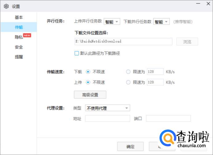 进入“设置”页面,在菜单栏中找到“传输”进行下载上传文件的网络速率的设置。