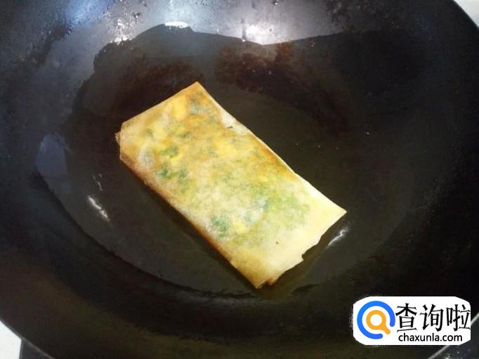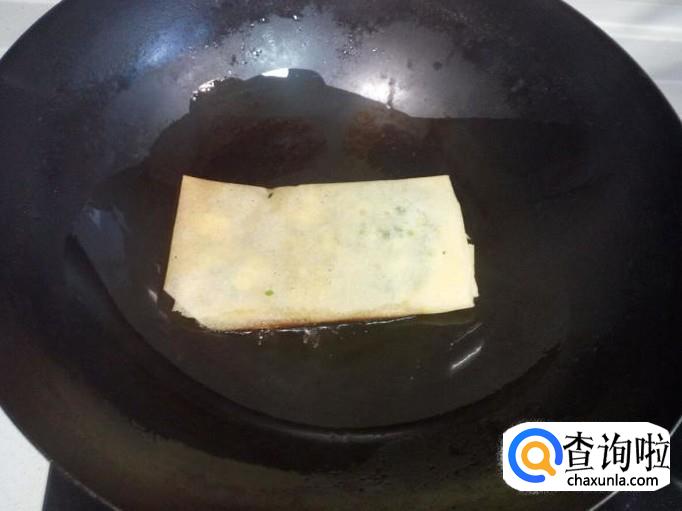 锅内放入少许油(锅底沾满油即可)加热,锅热后,放入煎饼盒子小火煎塌。